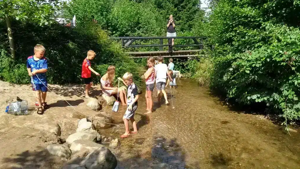 Les enfants peuvent jouer dans le ruisseau et profiter de la petite plage aménagée.