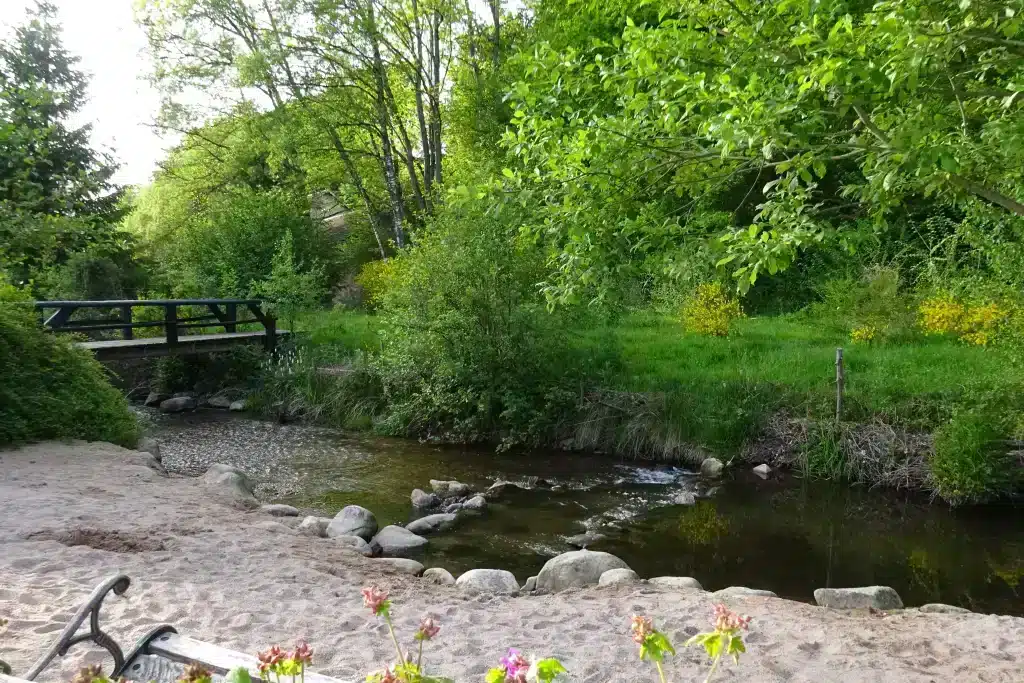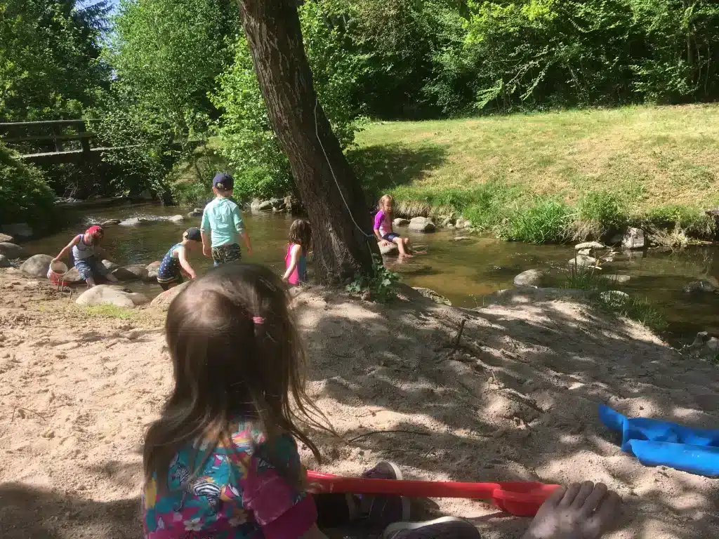 Avec son sable fin, son ruisseau peu profond et son environnement naturel semi-ombragé, c’est un véritable paradis pour les tout-petits comme pour les plus grands.