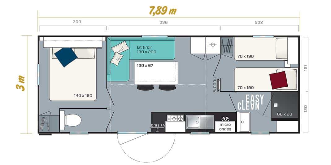 Ces mobilhomes offrent un excellent rapport qualité/prix pour les familles de 4 personnes.